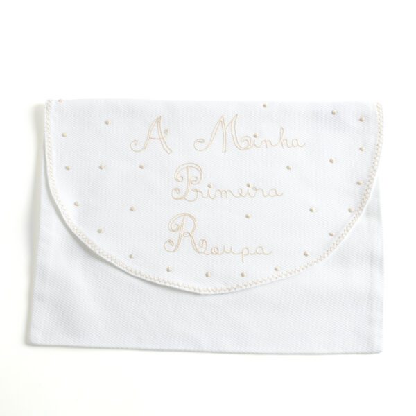 My first outfit bag in hand-embroidered pique, it is perfect for putting the pieces your baby needs. It was made with care and love.