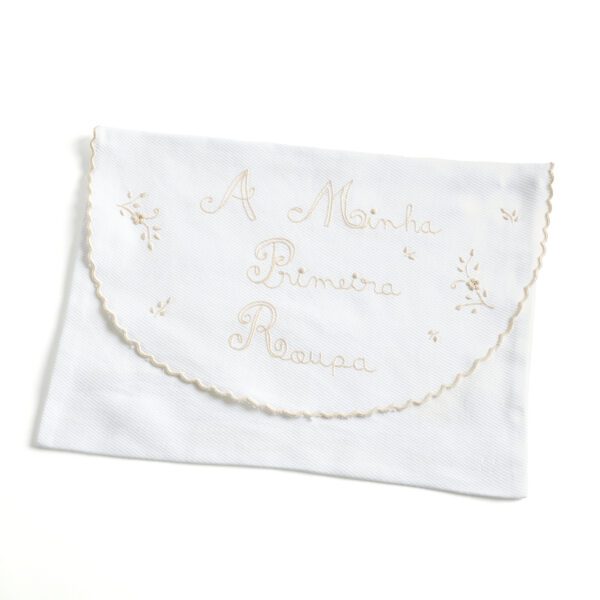 My first outfit bag in hand-embroidered pique, it is perfect for putting the pieces your baby needs. It was made with care and love.