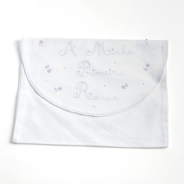 It stands out for its soft touch and also offers the necessary resistance to protect the most symbolic piece of the layette: the newborn’s first outfit bag. The soft purple embroidery, with the inscription “My First Outfit” , gives it a neutral and delicate charm. This makes it a perfect option for both boys and girls.