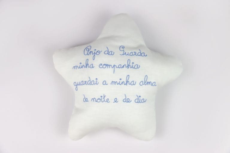 The pillow with the prayer “Guardian Angel, my companion, guard my soul night and day” is a unique and charming piece that brings a touch of protection and serenity to the little ones’ room. Hand-embroidered with this special message, the pillow is not only a decorative item, but also a symbol of affection and spirituality. In this way, it creates a welcoming and meaningful environment.