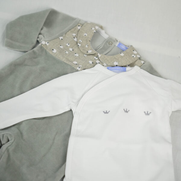 It offers a soft and breathable texture , perfect for baby’s sensitive skin . The fibers used are natural and sustainable , respecting the environment and guaranteeing a delicate touch in each piece. Ideal for the first months of life , this set combines quality, tradition and love .