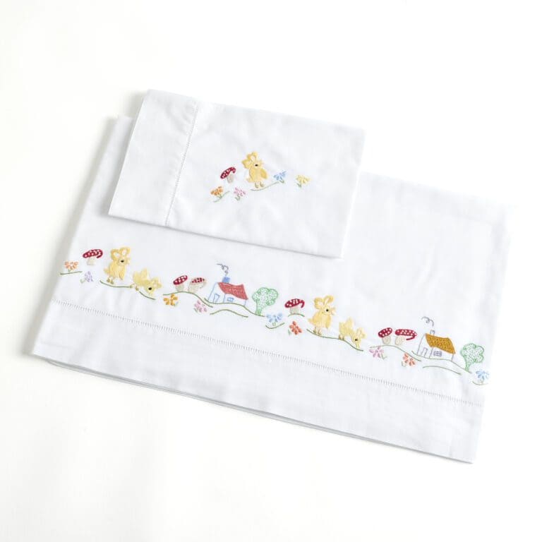 Hand-embroidered sheet, ideal for creating a cozy environment and perfect for your baby’s delicate skin. It was made with care and love.