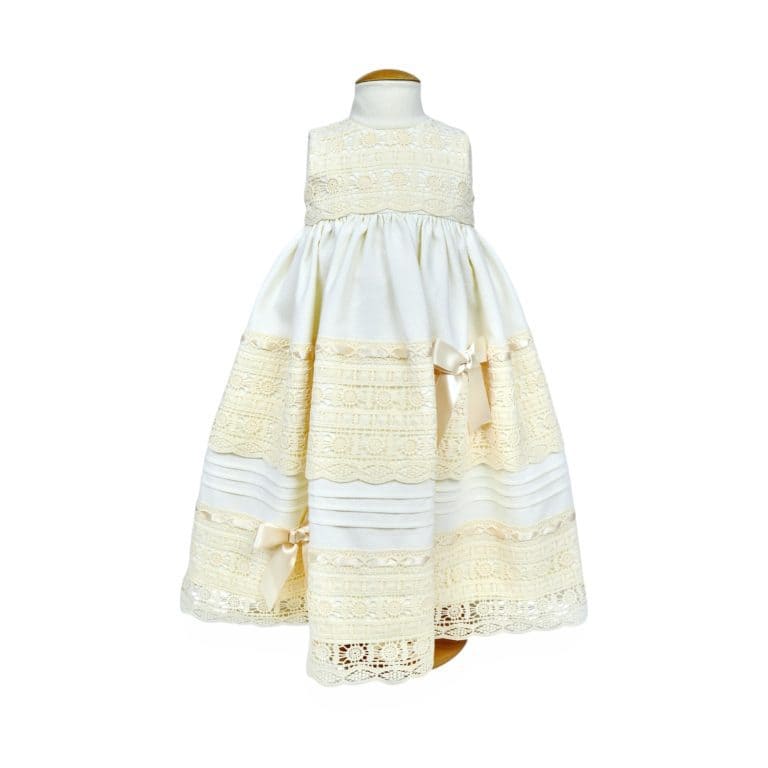 Additionally, the fabric used is extremely soft, specially designed for your little girl’s delicate skin. For this reason, the flowing design of the dress conveys a timeless elegance, making it perfect for occasions such as ceremonies, baptisms and other memorable celebrations.
