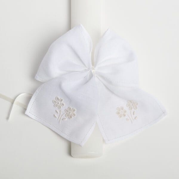 Linen bow for baptism candle, hand embroidered.